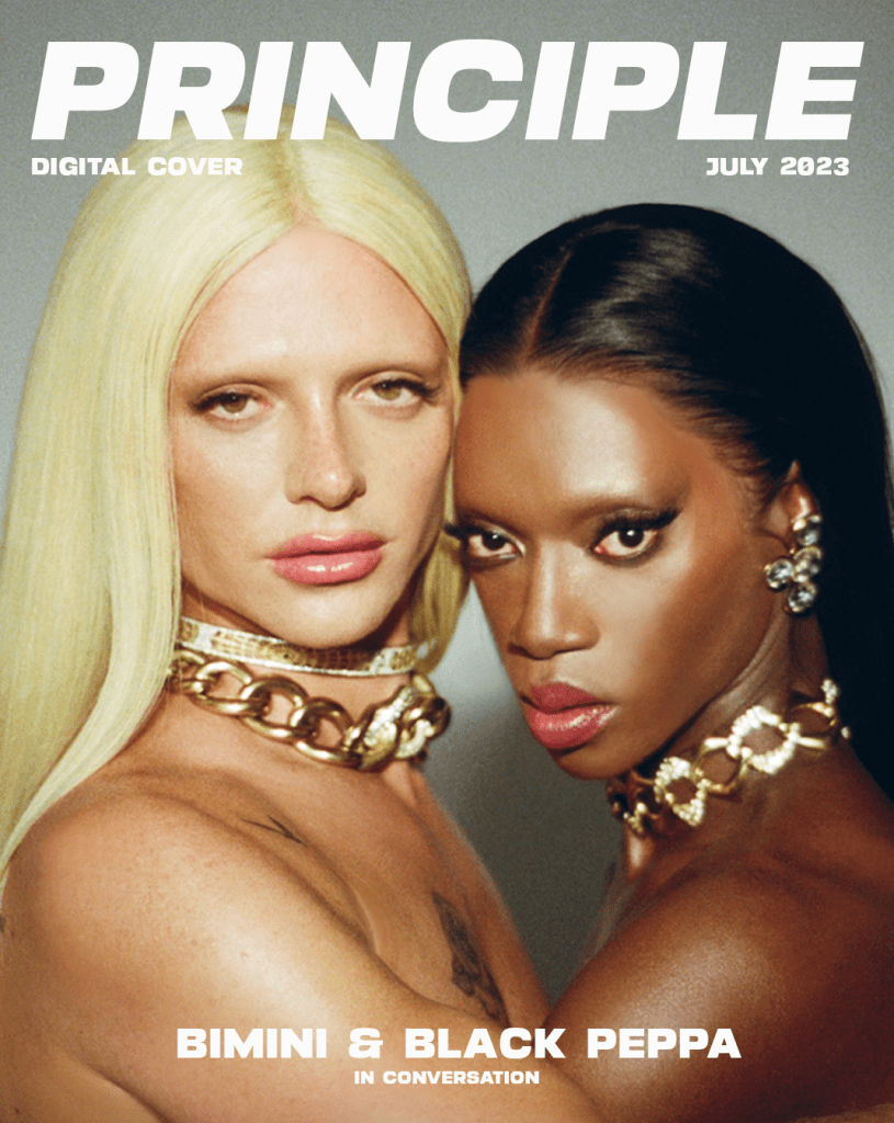Following their fierce Principle cover shoot in London, Bimini and Black Peppa sat down together to discuss how they became the queens they are today. In our exclusive conversation piece, we learn more about Bimini and Peppa’s queer identity, their introduction to the world of drag, their experiences on Drag Race, and what the future holds for them.