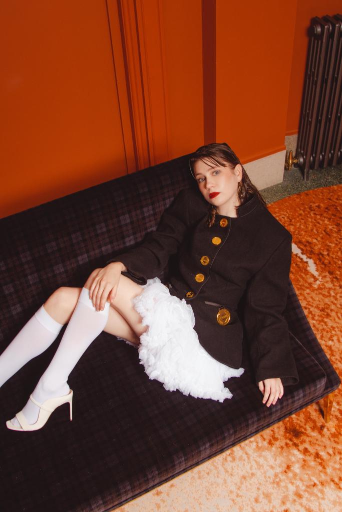 Three series in, it’s time for Tori – one of Heartstopper’s most intriguing characters – to really step out of the shadows. While much of the narrative—based on Alice Oseman’s heartwarming, feel-good graphic novels—has focused on the evolving relationship between teenagers Charlie (Joe Locke) and Nick (Kit Connor), the supporting cast has also had its moments to shine. However, Charlie’s sister Tori—the deliciously enigmatic Wednesday Addams-like figure, with her thick fringe, emotionless expression, and super dry deadpan delivery—has so far only appeared occasionally, offering dry commentary at key moments. But in this latest series, Tori finally takes centre stage as she not only helps her brother Charlie deal with some serious mental health issues, but also finds herself developing a relationship with a guy called Michael. “It was a fun challenge to make her a bit more three-dimensional,” she tells us as she whisked off to finish up the pictures.
