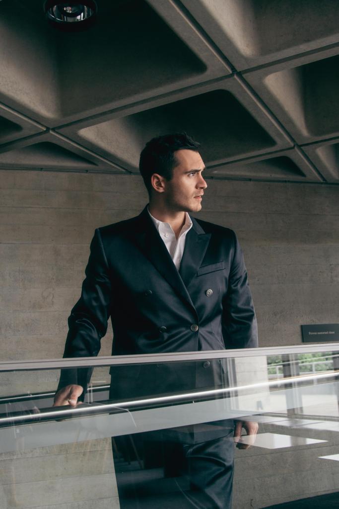 We caught up with Julian during our Principle shoot at the National Theatre to talk about chasing big dreams, nailing a one-take jewellery heist scene, why he quite literally burned his business degree, and the rom-com he’s secretly working on.